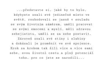 - posilování odvahy, zodpovědnosti a svobody k tvorbě vlastní životní cesty