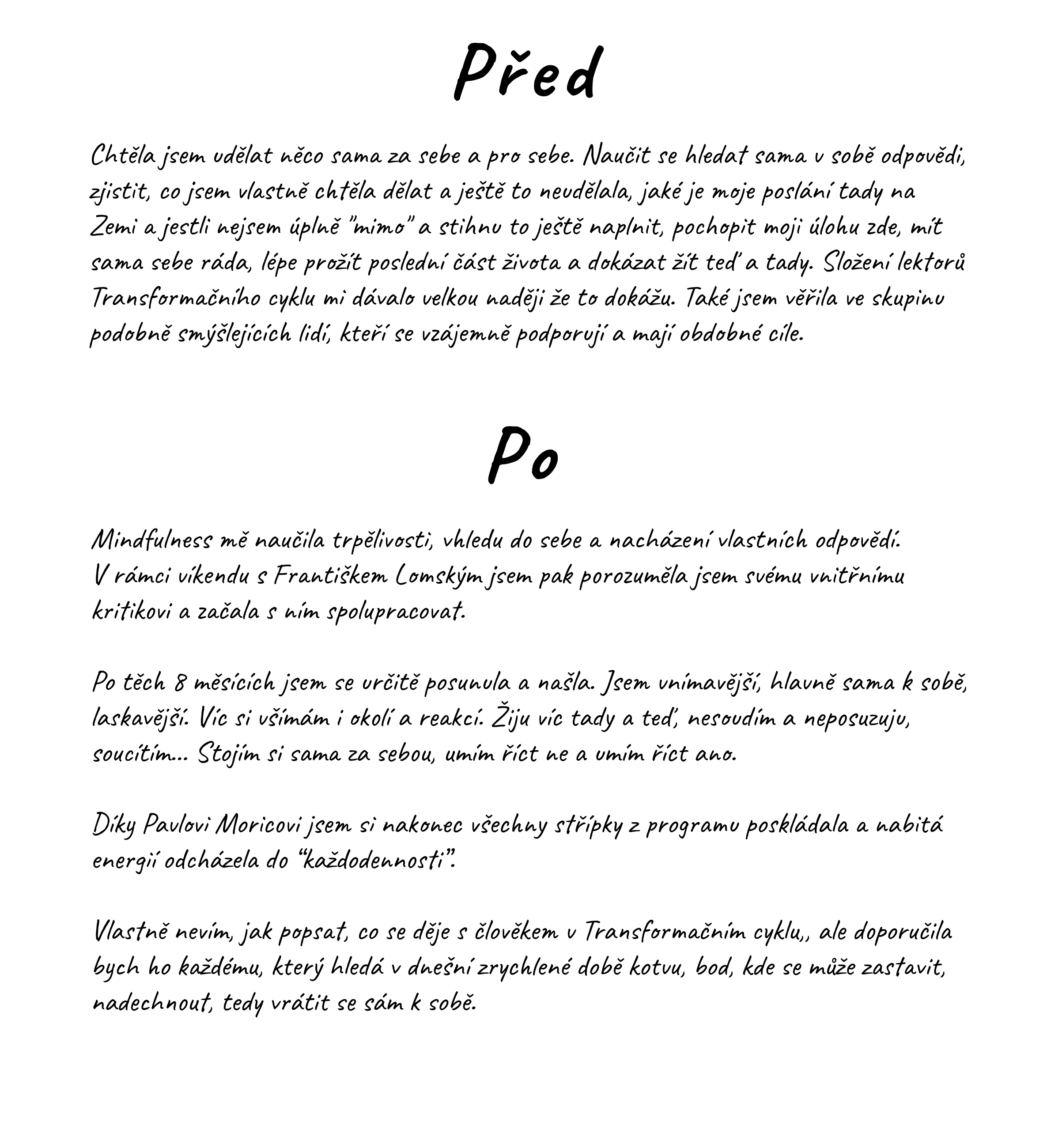 Toto video vytvořili účastníci 4. ročníku Transformačního cyklu čistě z vlastního nadšení. Nás tím nadchli také :) Děkujeme!