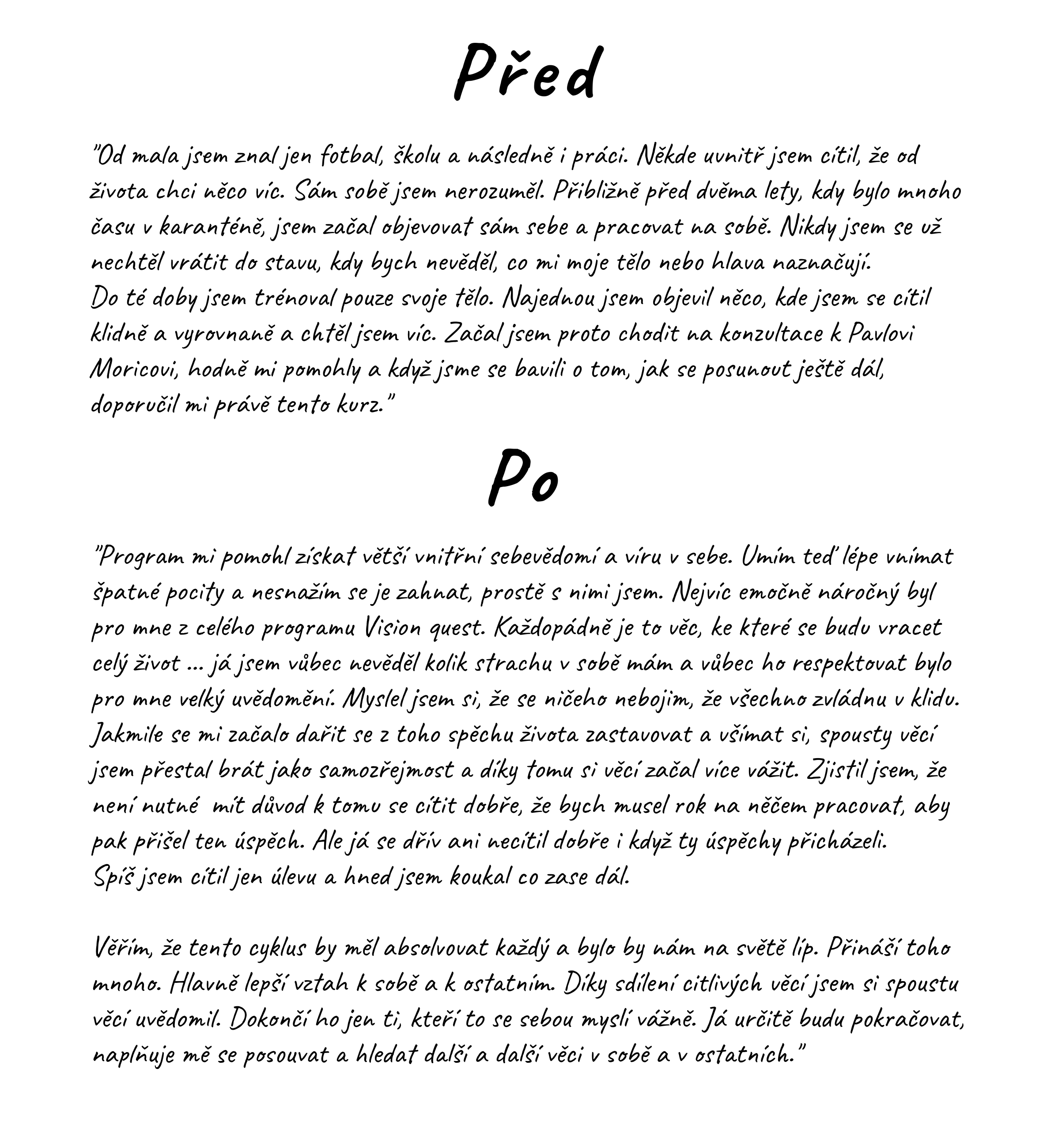 V programu našli často zcela nečekané odpovědi na své otázky, nová přátelství, vnitřní jasnost a sílu nebo dlouho nevědomé neefektivní vzorce chování, které je svazovaly. Někteří si sáhli na vnitřní radost a vnesli ji do života, jiní se poprvé dokázali vymezit.